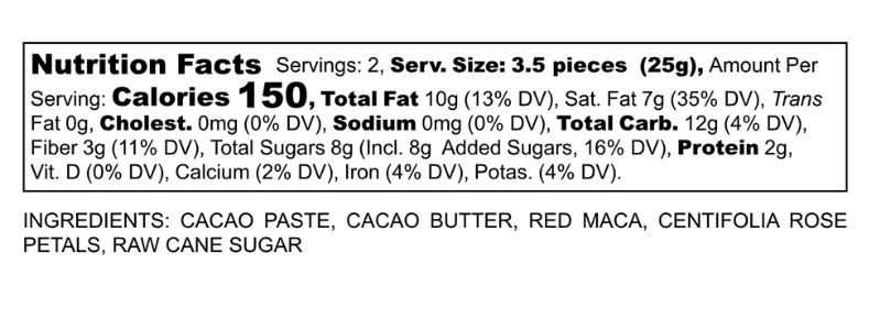Disclaimer: Statements made on this website regarding cacao or related products have not been evaluated by the Food and Drug Administration (FDA). Our products are not intended to diagnose, treat, cure, or prevent any disease. Processed in a facility that may handle nuts, dairy, and/or soy.