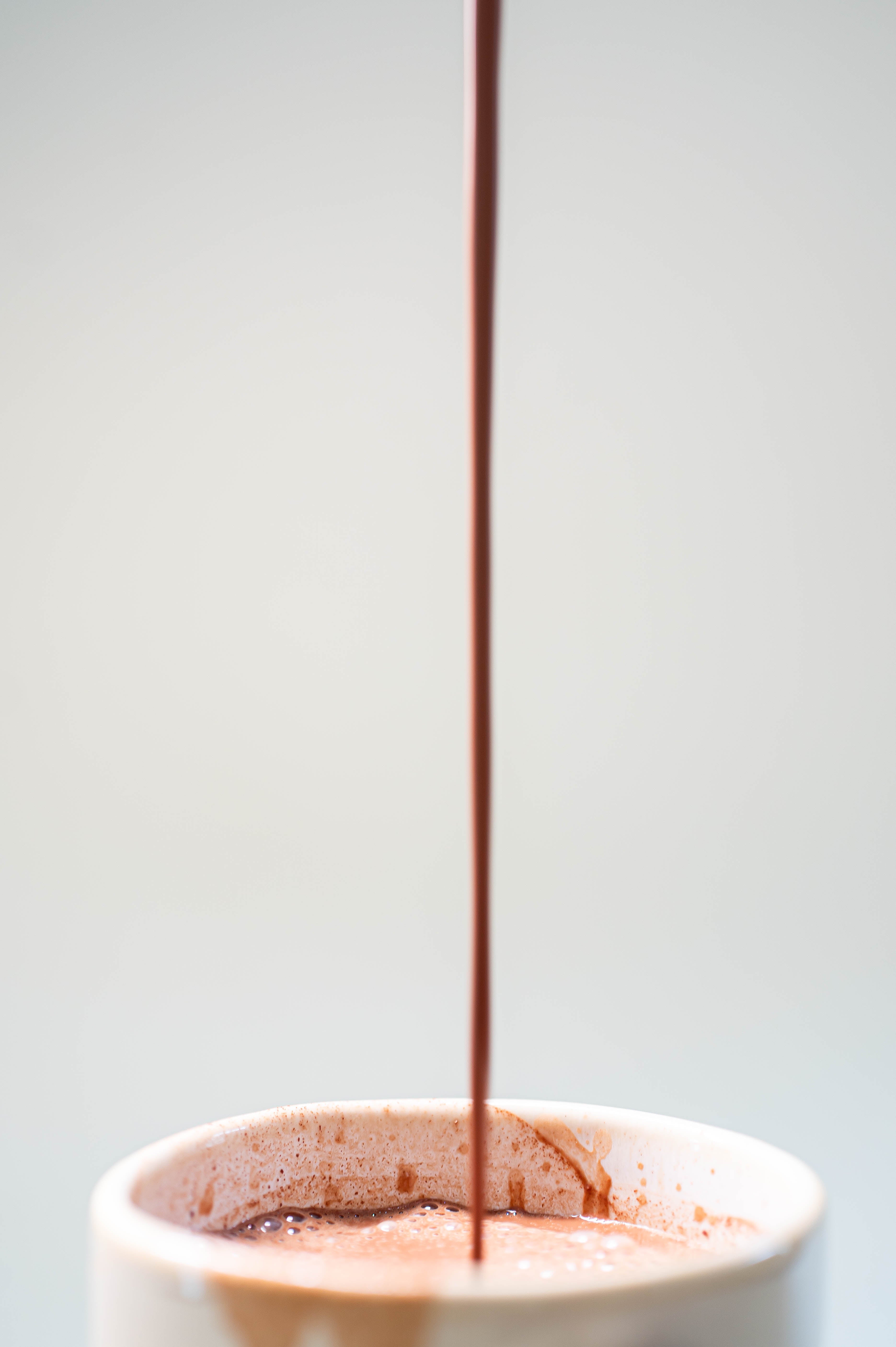 - Add the boiled water/milk to your cup with chopped cacao, let the Cacao brew and dissolve for a couple minutes, and mix and froth with a manual or electronic whisker.